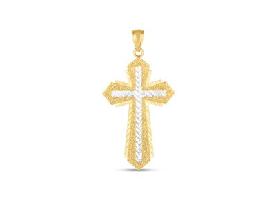 14k Two Tone Gold Diamond Cut Cross Pendant