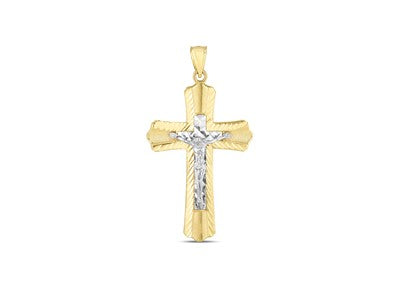 14k Two Tone Gold Diamond Cut Dual Cross Textured Pendant