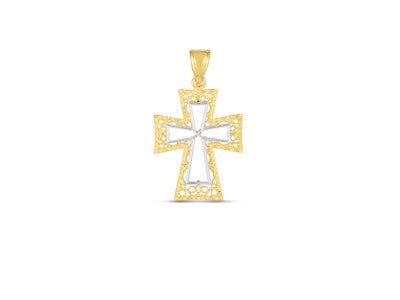 14k Two Tone Gold High Polished Diamond Cut Cross Pendant