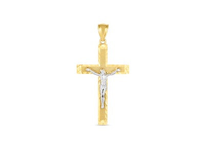 14k Two Tone Gold Textured Diamond Cut Cross Pendant