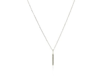 14k White Gold Bar Pendant with Diamonds