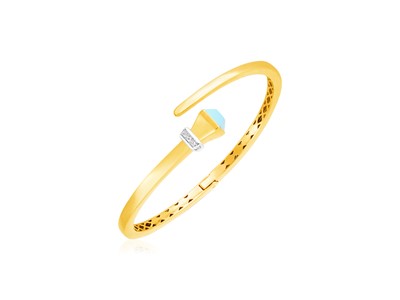 14k Yellow Gold Crossover Hinged Bangle with Turquoise and Diamonds