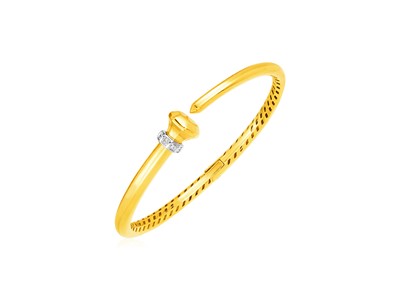 This 14k Yellow Gold Hinged Bangle is a timeless piece of elegance, featuring sparkling diamonds that enhance its sleek, sophisticated design. The hinged closure ensures a perfect fit, while the radiant diamonds add a luxurious touch. Ideal for adding refined beauty to any occasion, this bangle combines classic style with modern luxury.