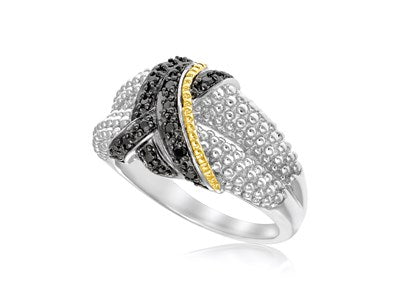 18k Yellow Gold & Sterling Silver Popcorn Ring with Black Diamonds
