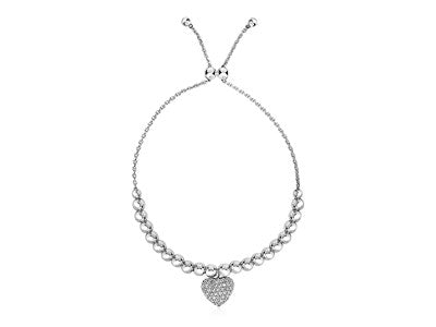 Adjustable Sterling Silver Bead Bracelet with Heart Charm