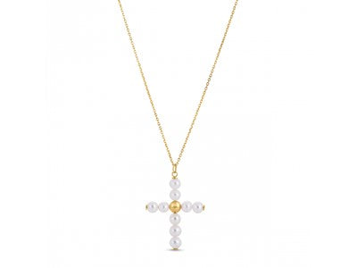 Pearl Cross Pendant in 14k Yellow Gold