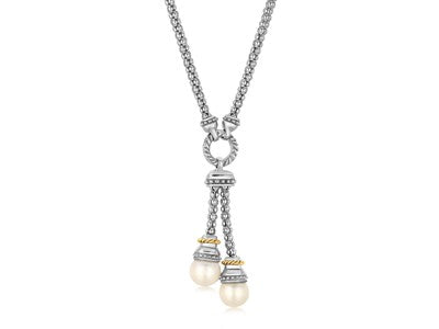 Pearl Lariat Motif Popcorn Necklace in 18k Yellow Gold and Sterling Silver