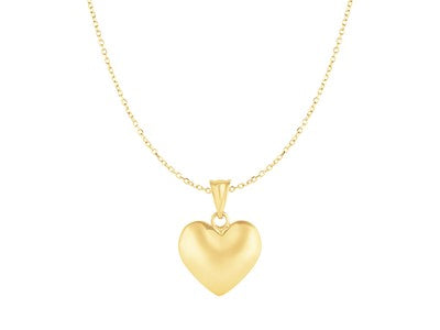 This Puffed Heart Pendant in 10k Yellow Gold is a timeless symbol of love and affection. Including an 18" Cable Chain, its smooth, rounded design and radiant gold finish, it offers a soft, elegant look that complements any ensemble. Perfect for everyday wear or as a thoughtful gift, this pendant adds a touch of warmth and charm to any jewelry collection.