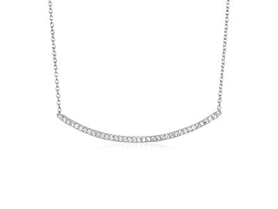 Sterling Silver Curved Bar Necklace with Cubic Zirconias
