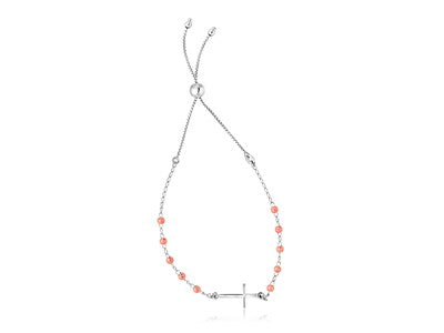 Adjustable Sterling Silver Rose Finish Bracelet with Cross