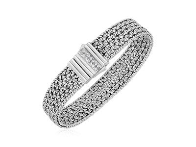 Sterling Silver Woven Rope Bracelet with White Sapphires